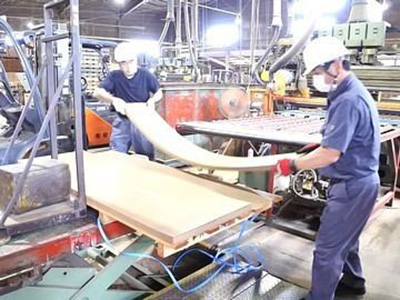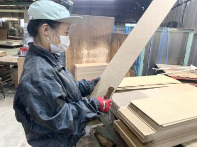 家具・家電・梱包から自動車まで、さまざまな用途に使われる「ハードボード」。そのハードボード(木質繊維版)を切断し、梱包運搬する仕事です。